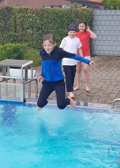 In der Freibadsaison hat es das Wetter leider nicht so gut mit uns gemeint, was den Kindern den Spaß am Schwimmen nicht genommen hat. Zum Abschluss des Halbjahres haben die Kinder die Erfahrung gemacht, wie es sich anfühlt in Kleidung zu schwimmen. Sie haben verschiedene Lagen ausprobiert und es geschafft viele Bahnen zu schwimmen. Zum Abschluss haben die Kinder es geschafft sich im Wasser zu entkleiden. Eine tolle Leistung!