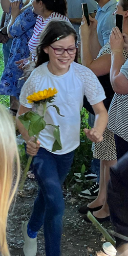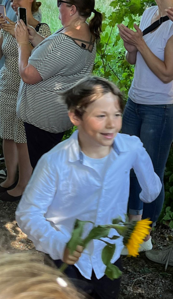 Bei bestem Sommerwetter, mit Sonnenblume in der Hand, Konfetti im Haar und einem strahlenden Lächeln im Gesicht (die ein oder andere Träne wurde weggewischt) flitzten dann alle Viertklässler auf den Hügel und durften durch das Spalier der Schüler, Lehrer und Eltern rauslaufen. Ein Hoch auf Euch!
